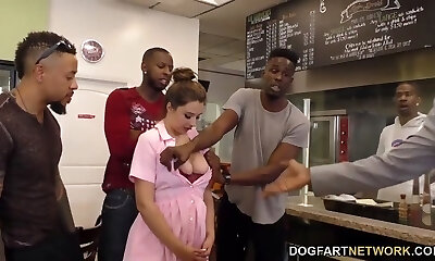 Waitress Elektra Rose Gangbanged By Dark-hued Customers