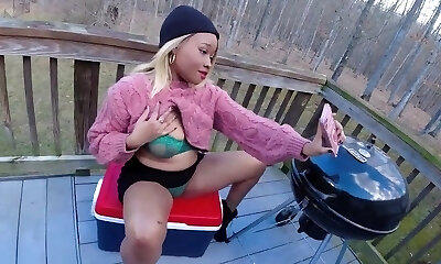 Skinny Girl Fucks A Fence Post