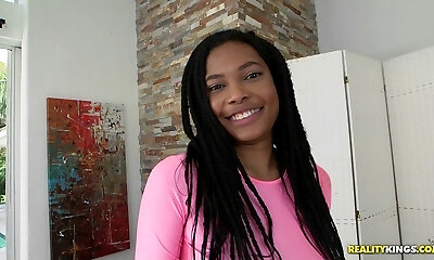 Stunning ebony babe Rihanna Rimes gets her shaved cunny drilled well